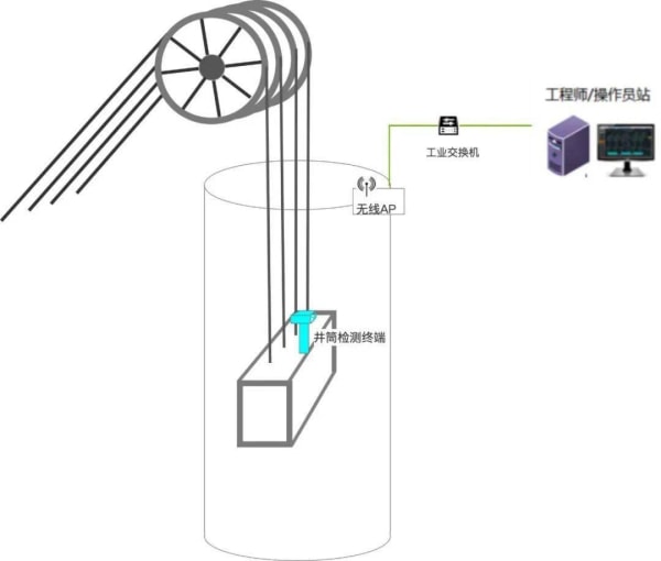 2.罐笼一般用于矿井的副井提升,作提升人员、矿石、设备、材料等,对于中、小型矿井,罐笼也可以作为主井提升,作为提升煤炭使用,罐笼是矿井提升中的重要设备之一。煤矿用罐笼的提升筒*易在长期使用后材料老化而出现断裂、形变等意外情况,需要监管人员定期对罐笼提升筒进行检修。但现有技术中,对罐笼提升筒检测时**停止罐笼且需监管人员实地检测,不仅耽误了煤矿罐笼运作,检测环境的恶劣还可能导致检测人员发生意外